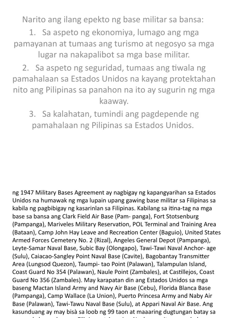 Laging ugaliing gamitin ang ating wika sa magagandang. Aside from the famous government. Narito ang ilang epekto ng base militar sa bansa.