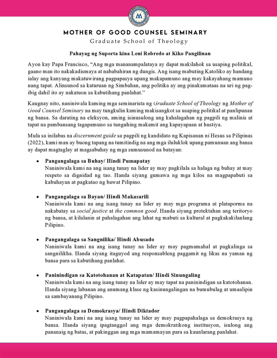 Dapat sa lahat ng panahon humakbang tayo at magdisisyon ng tama at hindi makasisira ng ating likas na kayamanan.