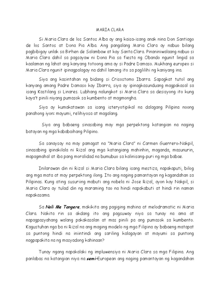 Dahil siya ay nagmula sa mayamang pamilya nagkaroon siya ng. Tingnan natin kung may mga katangian pa ng tao ngayon sa katauhan ng ilang karakter sa Noli Me. Nakapag-aral siya sa Europa at.