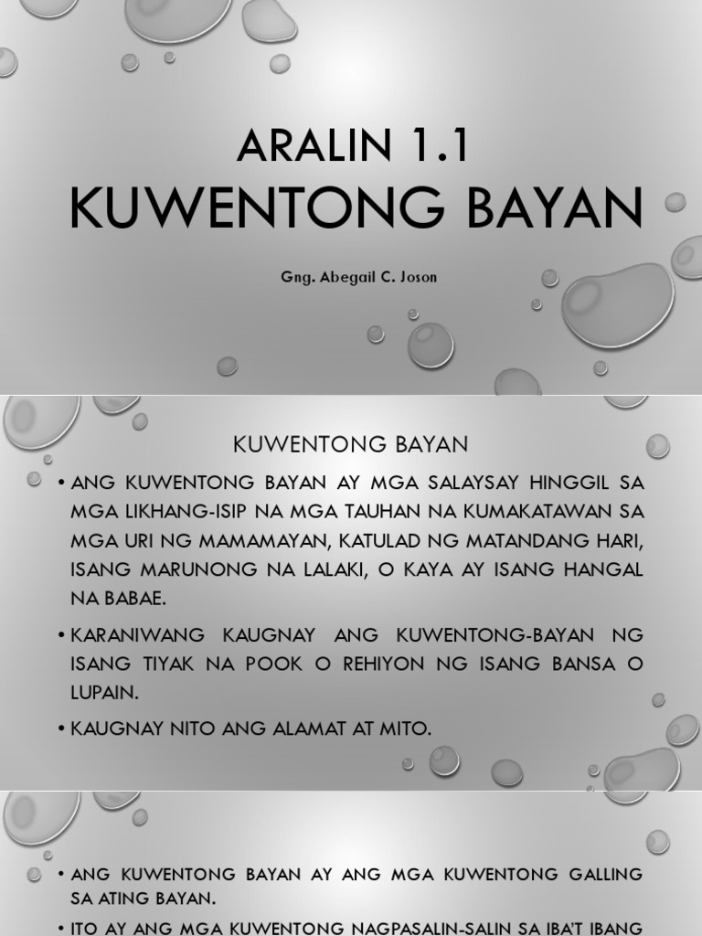 Ang kwentong bayan ay kwentong walang may-akda. View KWENTONG BAYANpptx from DEPARTMENT 151322 at Mabini Colleges. Ang kwentong bayan ay kwentong walang may-akda.
