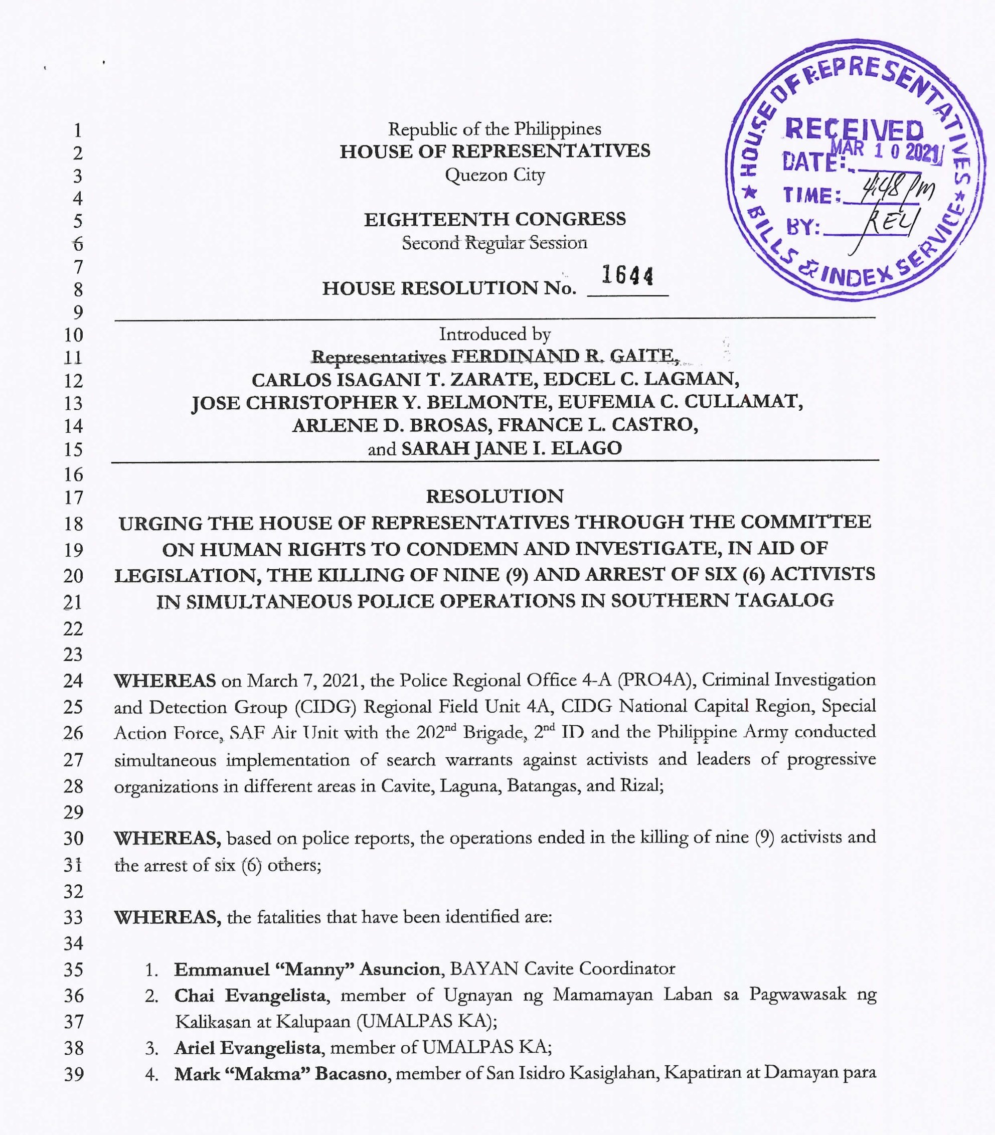 Bayan Muna Rep Ferdinand Gaite On Twitter We Have Filed House Resolution No 1644 To Urge The House Committee On Human Rights To Condemn And Investigate The Bloody Sunday Police Operations In