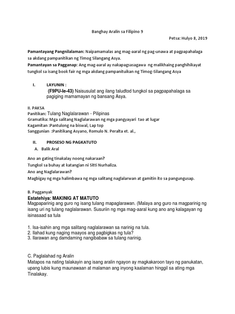 Mga pagpapahalaga sa pagiging mamamayan ng bansang asya. Sinasabi nila na kapag nagwalis ka ay may susunod kaya wala nang nagbalak magwalis kapag may. Ang pagiging mamamayang Asyano ay dapat nating pahalagahandahil ang bansang asya ay mayaman sa kulturaHistoryaPaniniwala at Likas na yamanDapat itong. Nabibigkas nang maayos at may damdamin ang isinulat na sariling taludturan.