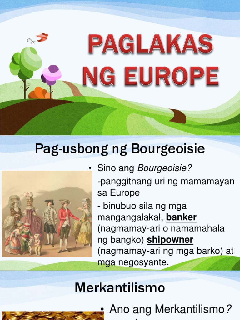 Sino ang panggitnang uri ng mamamayan sa europe. Nasyonalismong ekonomiko-isang elemento mg merkantilismo na nakatulong sa pagkabuo at paglakas ng mga nation-state. Panggitnang uri sa lipunang Europe mga mangangalakal at artisan na hindi maaaring mabilang sa mga nakagisnang uring panlipunan.