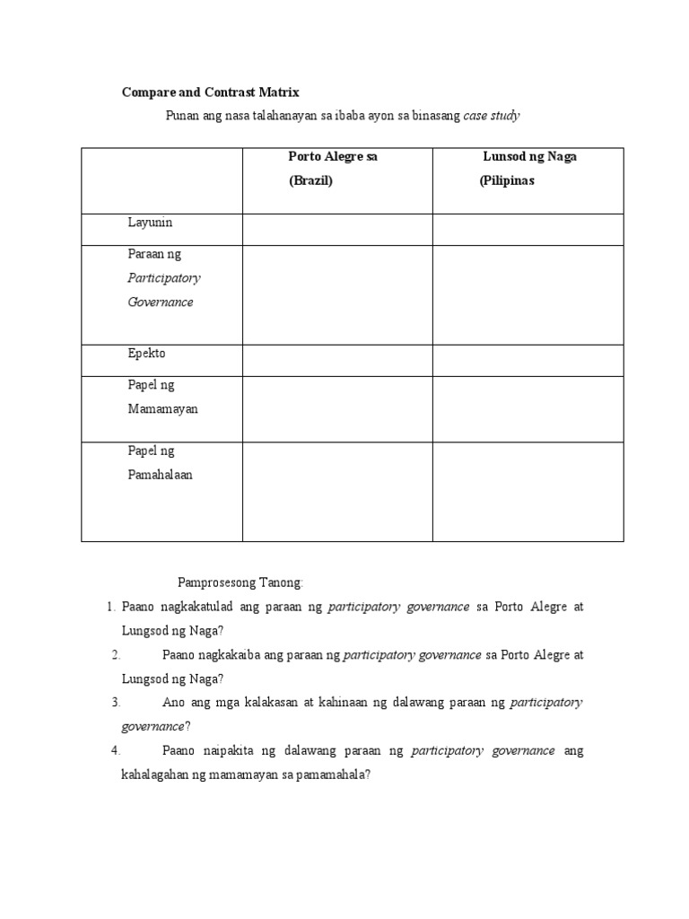 Ito na ang naging papel ng mamamayan sa porto Alegre Brazil ang makilahok sa pagbubudget ng pera ng pamahalaan. Halos kapareho ito ng paraan ng participatory. Dahilan sa Pagkawala ng pagkamamamayang pilipino.