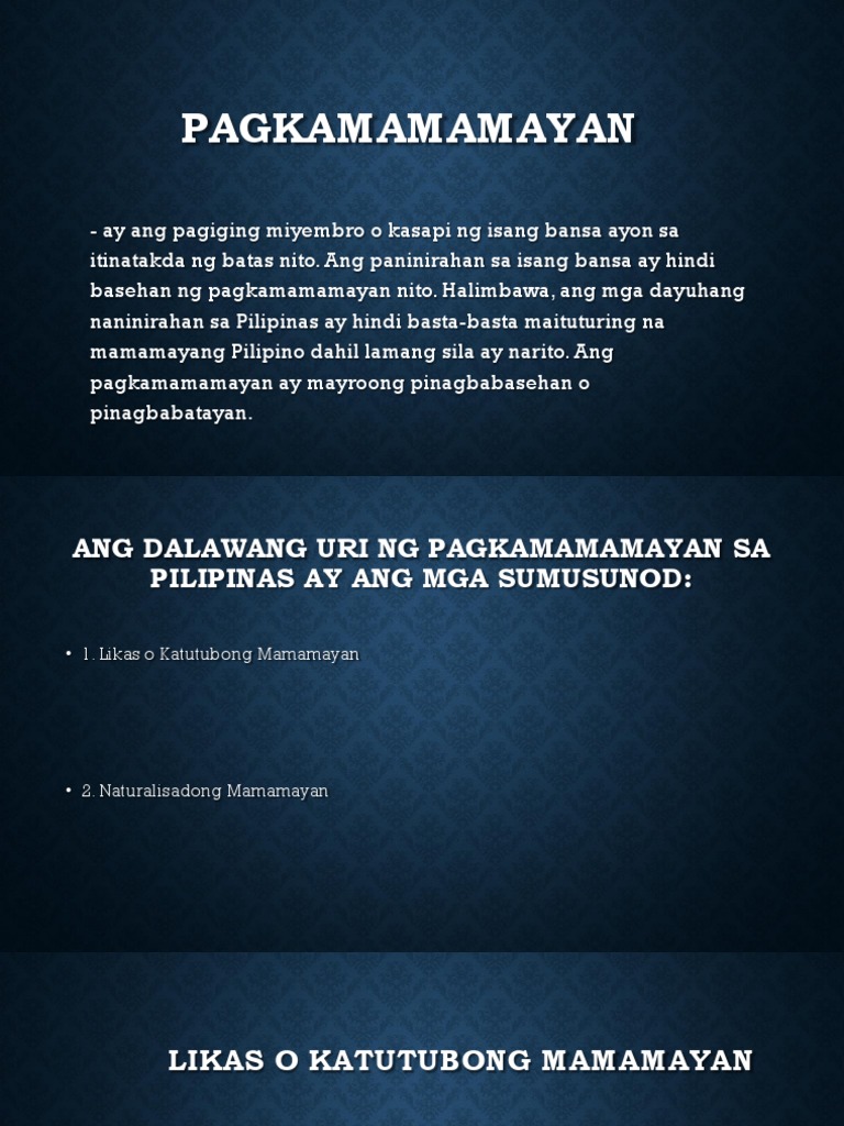 Ang Kahulugan Ng Pagkamamamayang Pilipino